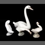 Lladro collection of four bird figures to include large Swan (22cm high approx) and three ducks in various poses. All in excellent condition.