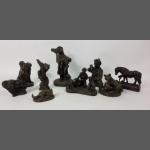 A collection of nine animal themed smaller bronzed resin statues from HEREDITIES and others. Largest is 17cm high approx.
