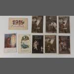 A sweet little collection of WWI postcards from serving father to young daughter at Leeds address. Cute Happy Birthday card from Muriel to her Daddy. Father seems to be in training in Yorkshire area. Nice sentimental little lot. Eight written cards and one silk.