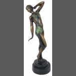 Art Deco inspired bronzed statue of an attractive lady with sword sheath (Salome?) Attractive figure with replacement base. 35cm high approx.