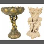 CLASSY!! A pair of plant pot holders both resin in the style of Italianate cherubs. Minor damage to nose.