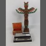 A small mixed lot comprising of a 36cm tall resin CANADIAN TOTEM POLE a STYLOPHONE and a small ONYX lidded trinket box