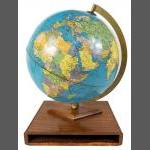PHILIPS 12" Political Challenge Globe on wooden base. Dated 1969. Minor wear and displays well. The display stand appears to have had a wooden drawer at some point but this is now missing.