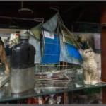 A collection of items to include a QUALITY metal and coloured glass sailing ship ornament dimensions 21cm length x 24cm height approx - also a ROYAL DOULTON small sitting kitten height 9.5cm approx (no chips/cracks or signs of damage) and lastly an interesting VINTAGE half pewter, half glass dimensions 13cm x 7cm approx