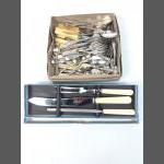 A quantity of cutlery including by makers DIXON and GALLOWAY, plus a boxed set of JOSEPH RODGERS & SONS carving knife, fork and steel