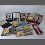A box containing a substantial quantity of cased flatware including teaspoons, knives, cake slice etc. Also a box containing two Bohemia crystal. 15 items in total.