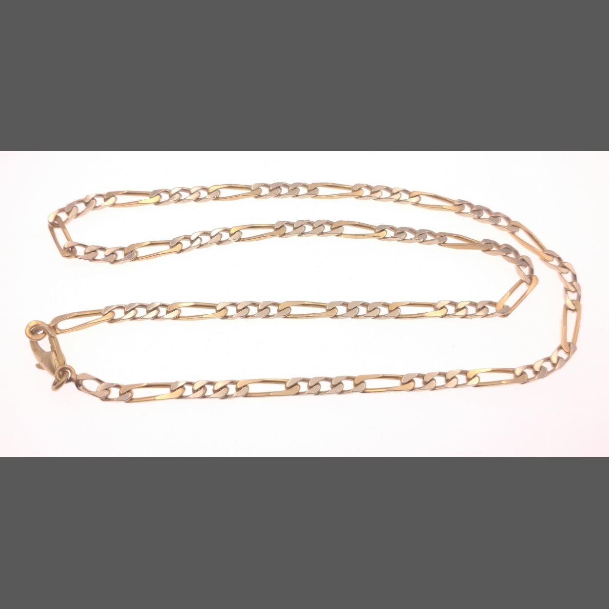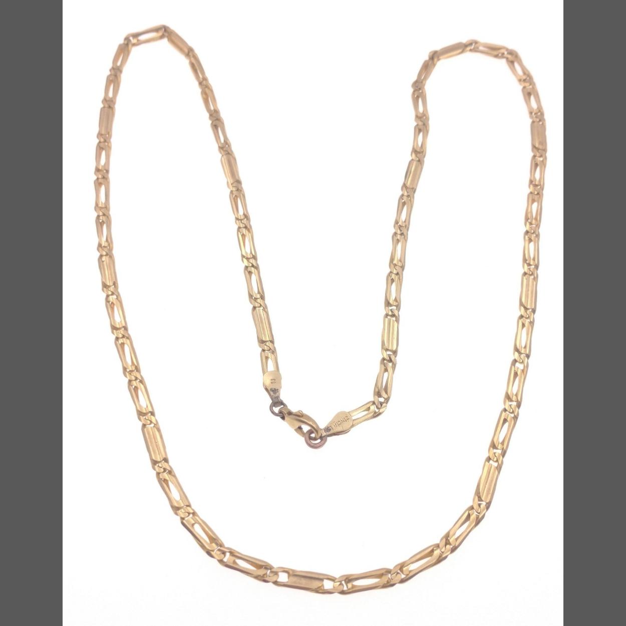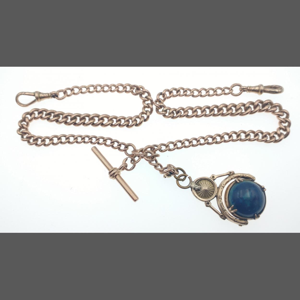A nice 9ct stamped yellow gold bracelet - To include a 1787 George lll gold Guinea 5th Edition issue guinea in remarkable condition, but this has been soldered and mounted onto a chain(on inspection the solder could be carefully snapped off and 'made good'professionally) total weight 25.48g approx this is attached to a 9ct stamped old watch chain 21cm length with 3 charms and a small T-bar - weight of