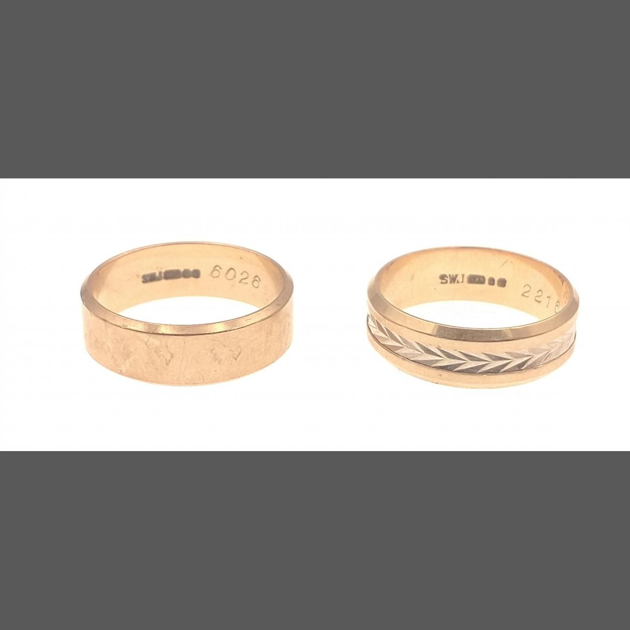 A his and her two 375 stamped yellow gold wedding bands ring size O and ring size N weight 7.13g approx