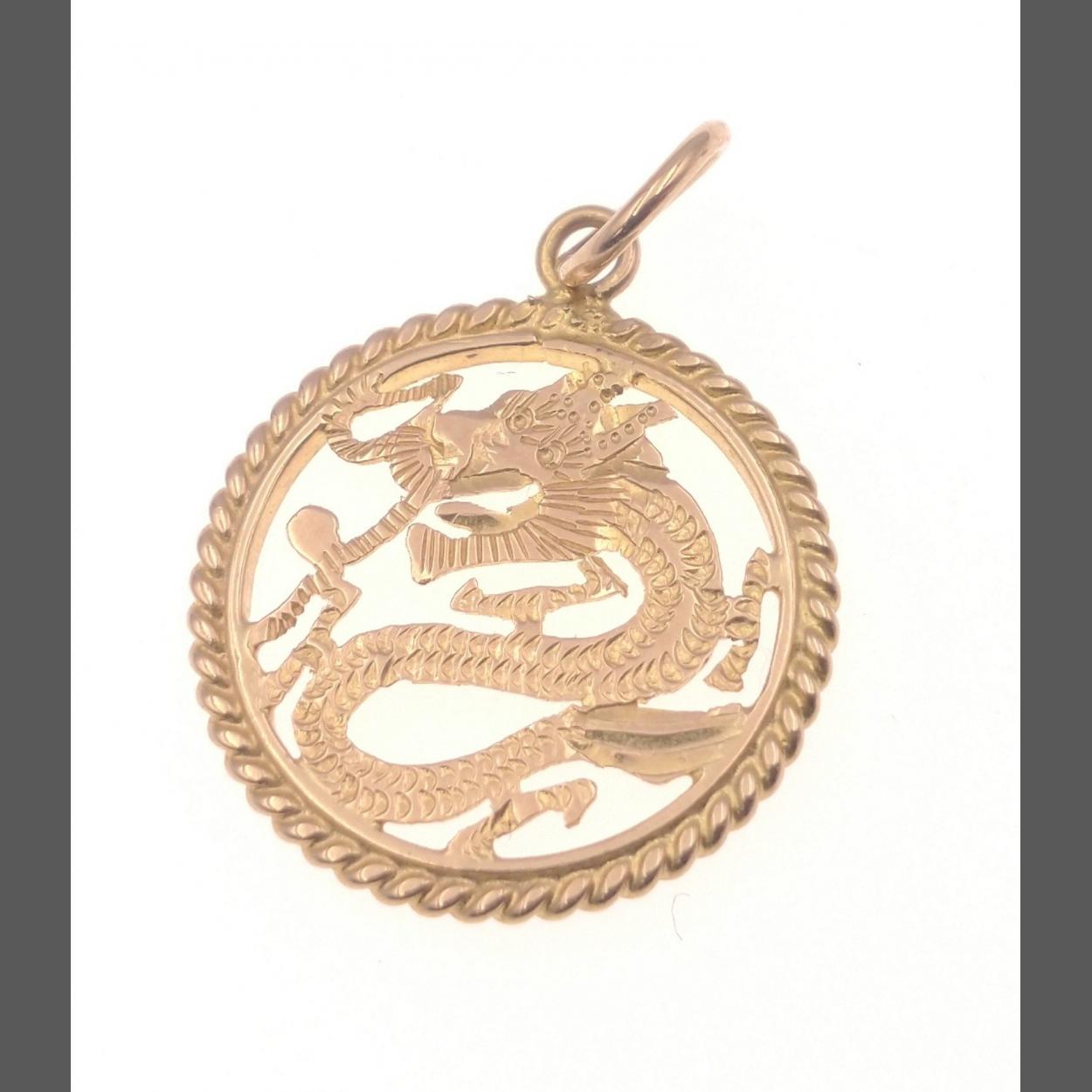 A 750 stamped yellow gold St Christopher weight 3.95g appro with a 9kt stamped yellow gold chain weight 4.60g approx