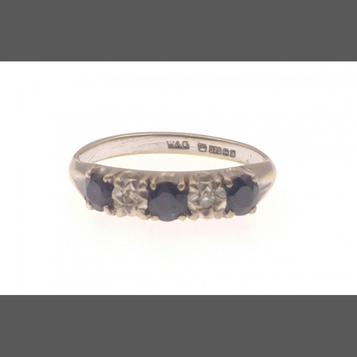 375 stamped and Hallmarked Birmingham yellow gold sapphire and small diamond(tested) set ring siz K weight gross 2.36g approx