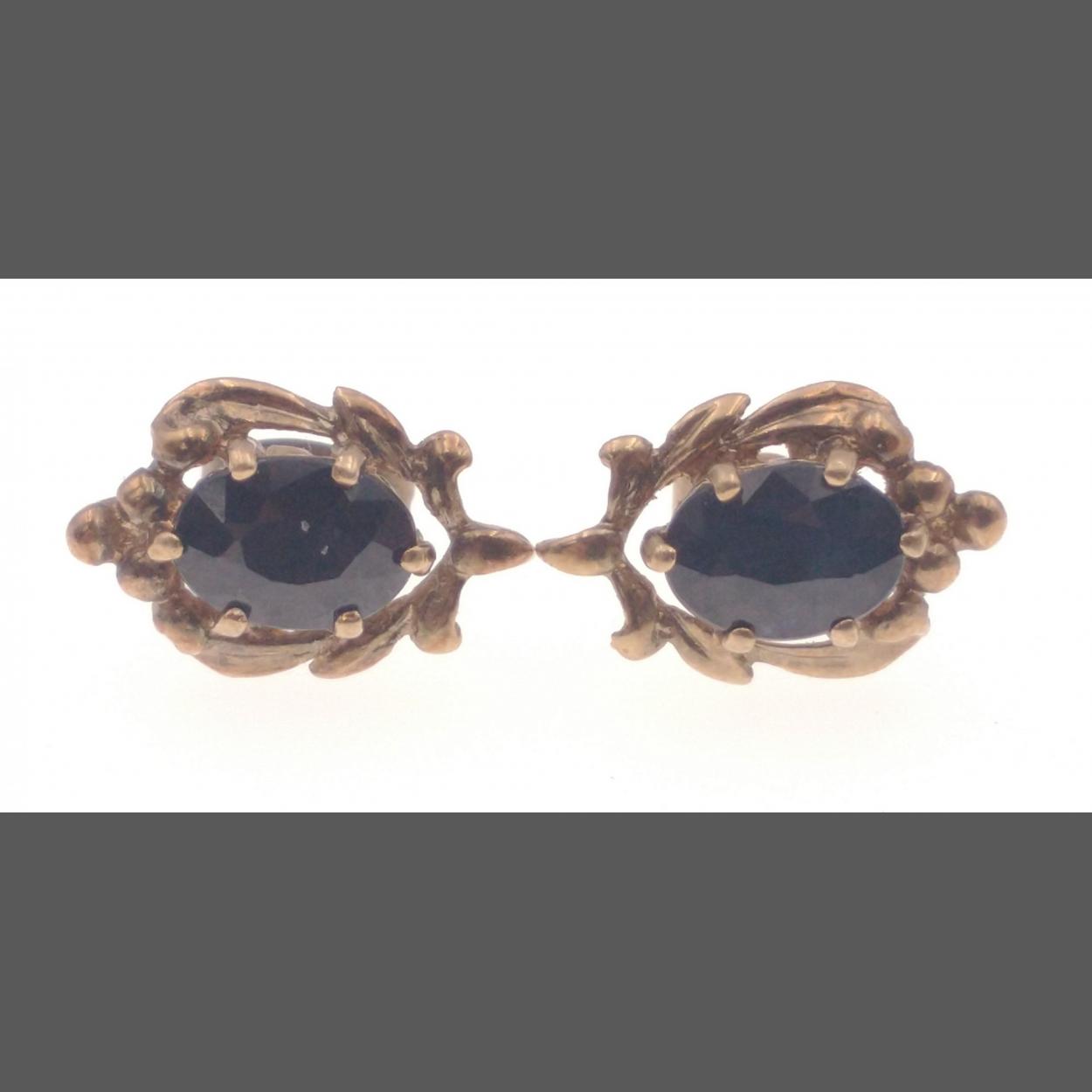 375 stamped yellow gold oval SAPPHIRE centred stud earrings gross weight 2.31g