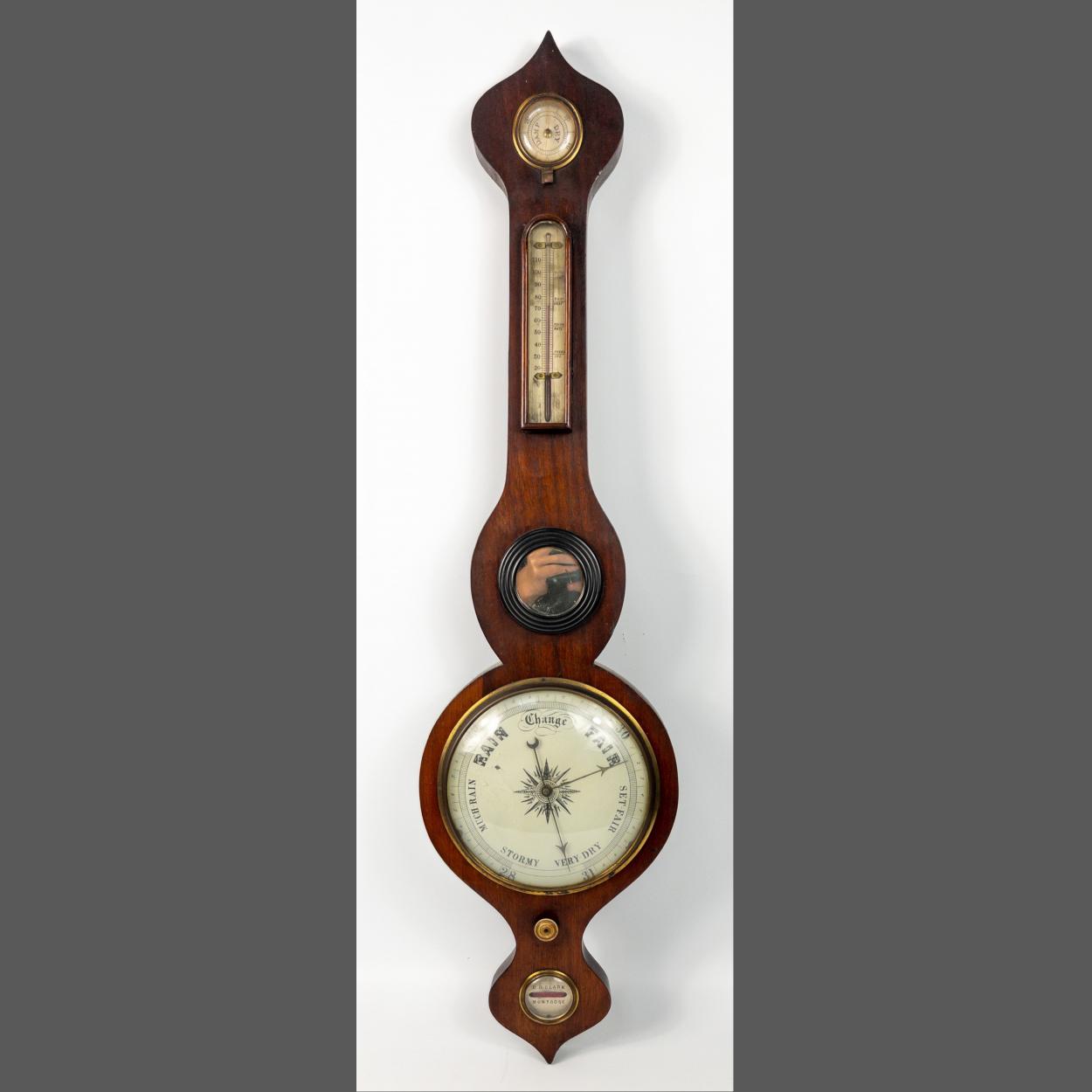 Superb large antique five glass banjo Scottish Barometer by DD CLARK of Montrose. 96cm tall, all glass in good order. Some cracking to surface of main face but overall in excellent condition. Opening to rear to show mercury tube.