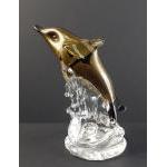 TWEEDSMUIR Glass Dolphin complete with label to base. Stands 17cm high approx and in excellent condition.
