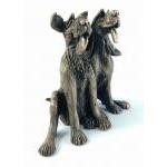 A FRITH pair of bronze effect resin dogs - TOM and FRED by Harriet Dunn, standing approx 17cm high.