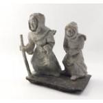 An un-named enigmatic pair of FRENCH CLAY MONKS weathering a storm clate 1950s/60s, artist unknown, dressed as monks standing 20cm tall approx