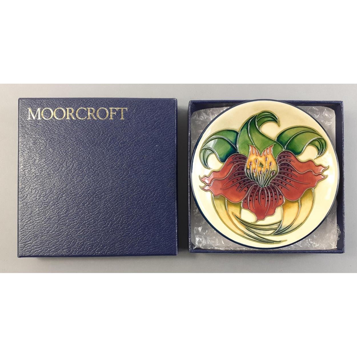 Boxed modern MOORCROFT TIGER pin tray in lovely condition. 11cm approx. From a wonderful well stored collection.