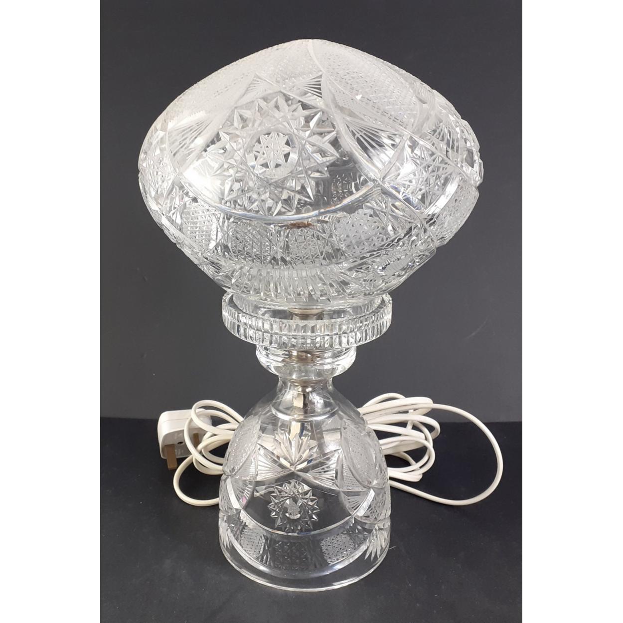 LIGHT-UP YOUR SPACE! A stunning cut glass lamp beautifully patterned with floral designs standing 34cm tall approx