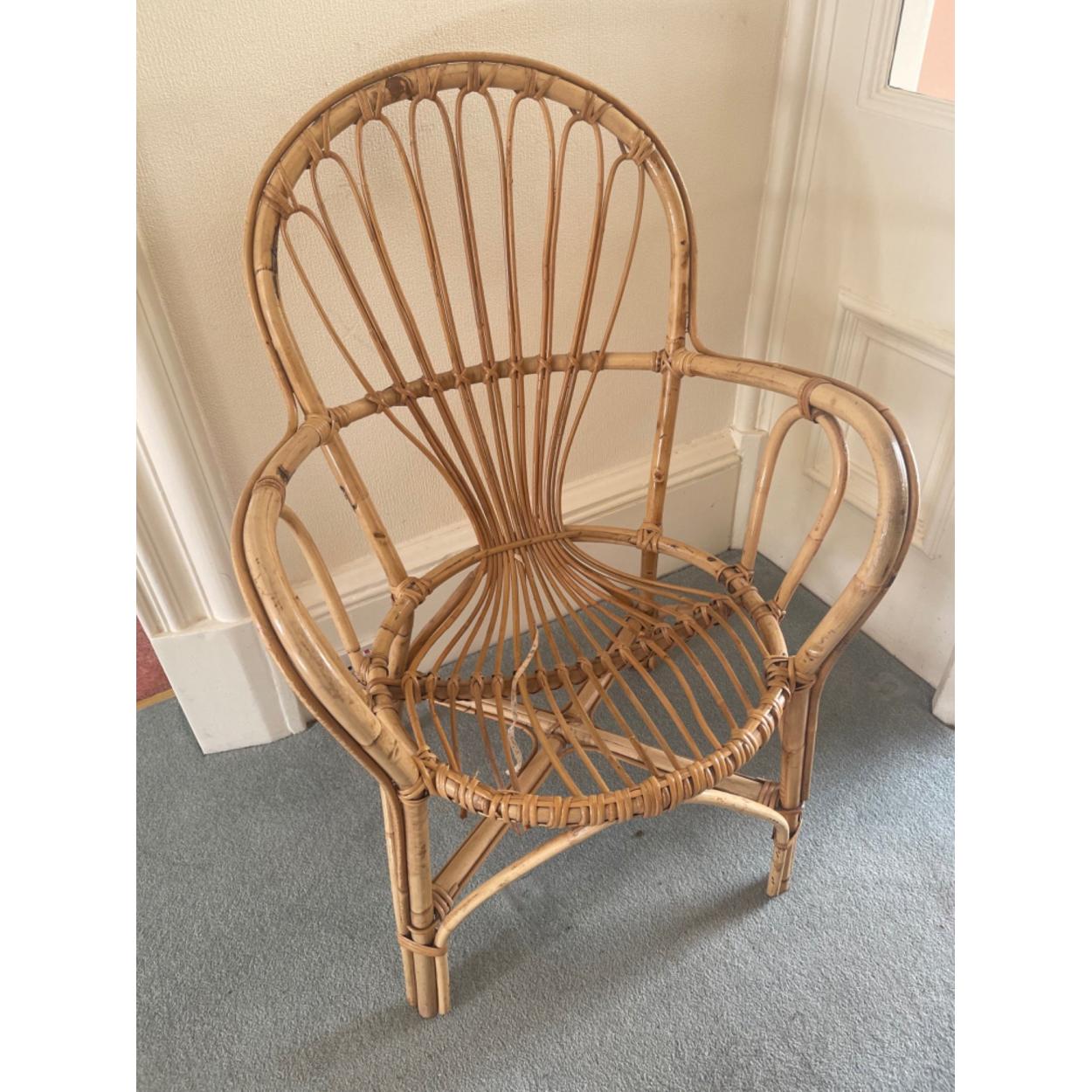 C1960s peacock effect fan tailed back bamboo armchair in good condition.