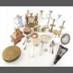An interesting mixed decorative lot to include a gong, ornate clock, Oriental vases, fan, blue and white vase, candlesticks etc. An interesting lot.