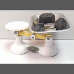A set of THE VIKING balance scales with a variety of imperial and metric weights