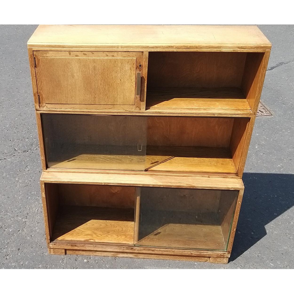 Legal style cabinet with sliding doors and cupboard. Consists of a base section and 2 joined sections.