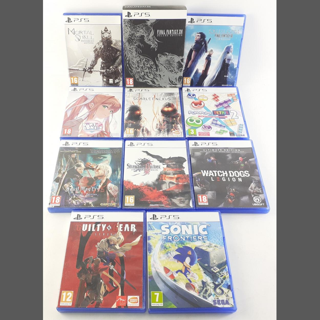 A collection of PS5 games to include Sonic, Watchdogs, Stranger of Paradise, Devil May Cry, Mortal Shell etc