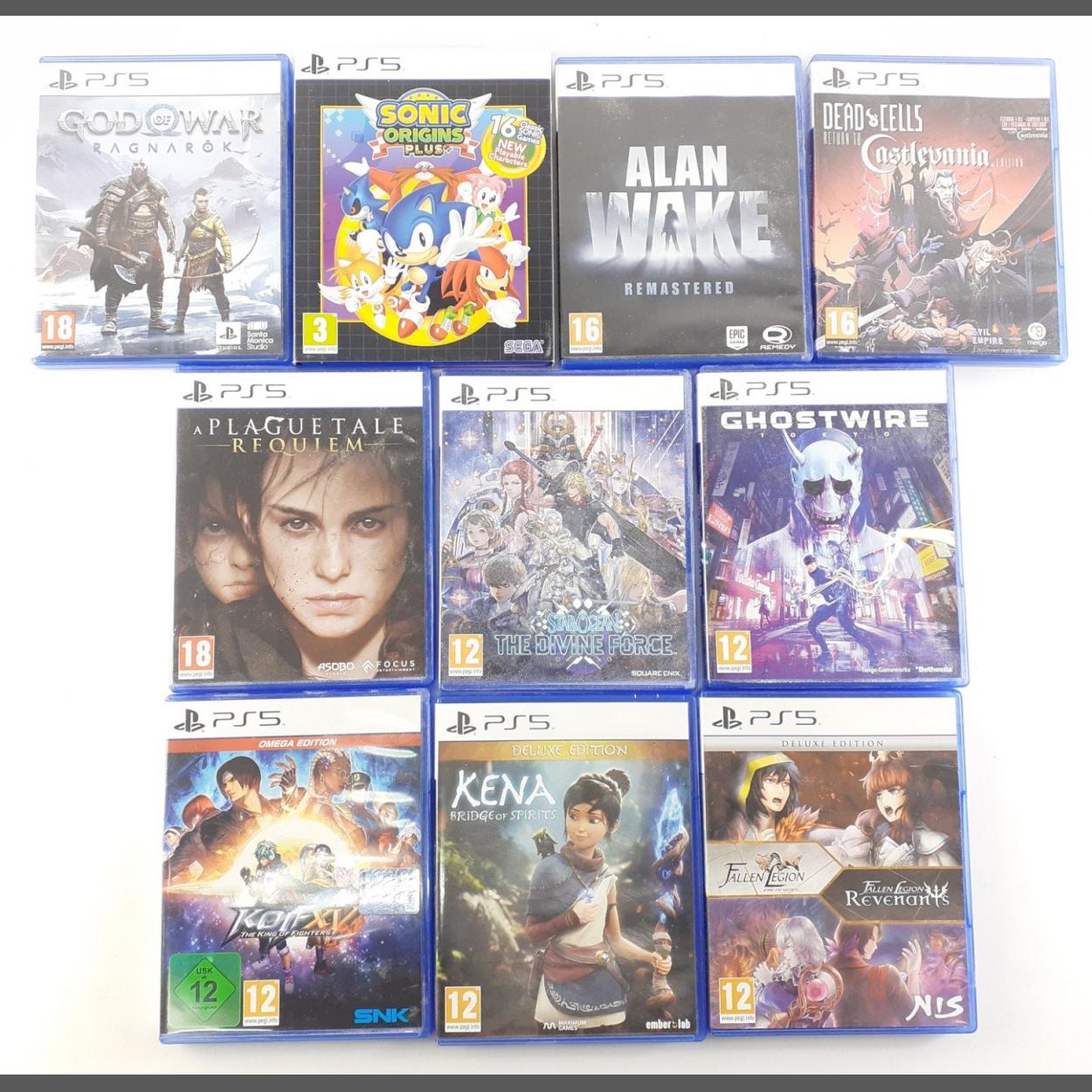 A great collection of 10 PS5 games. God's of War, Sonic, Dead Cells, Star Ocean, Ghostwire, A Plague Tale, the King of Fighters, Kenya, Fallen Legion,