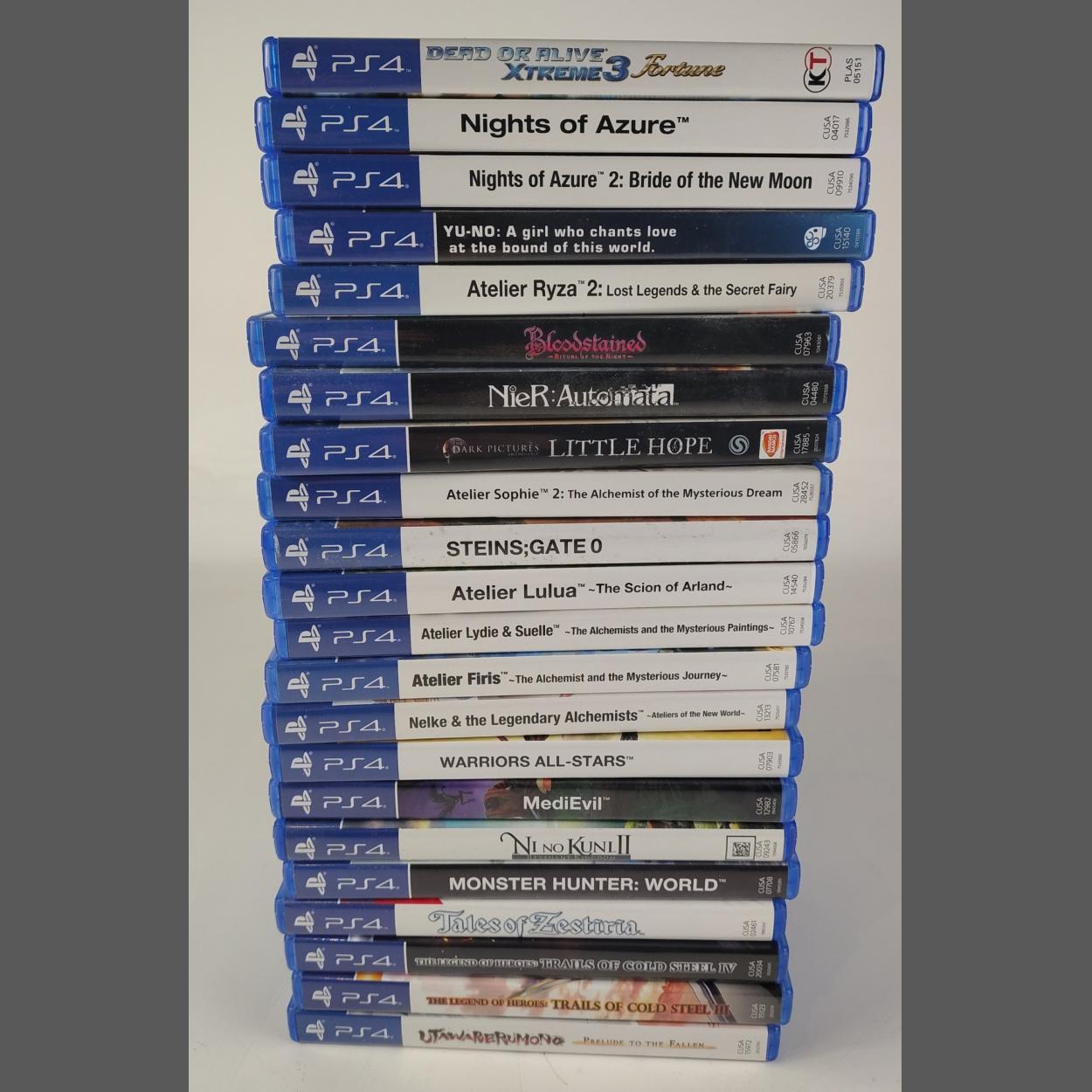 Twenty two SONY PS4 adventure, Fantasy etc to include STEINS GATE 0, ATELIER FIRIS, LULUA, RYZA 2, LITTLE HOPE, TALES OF ZESTIRIA, MediEvil etc etc