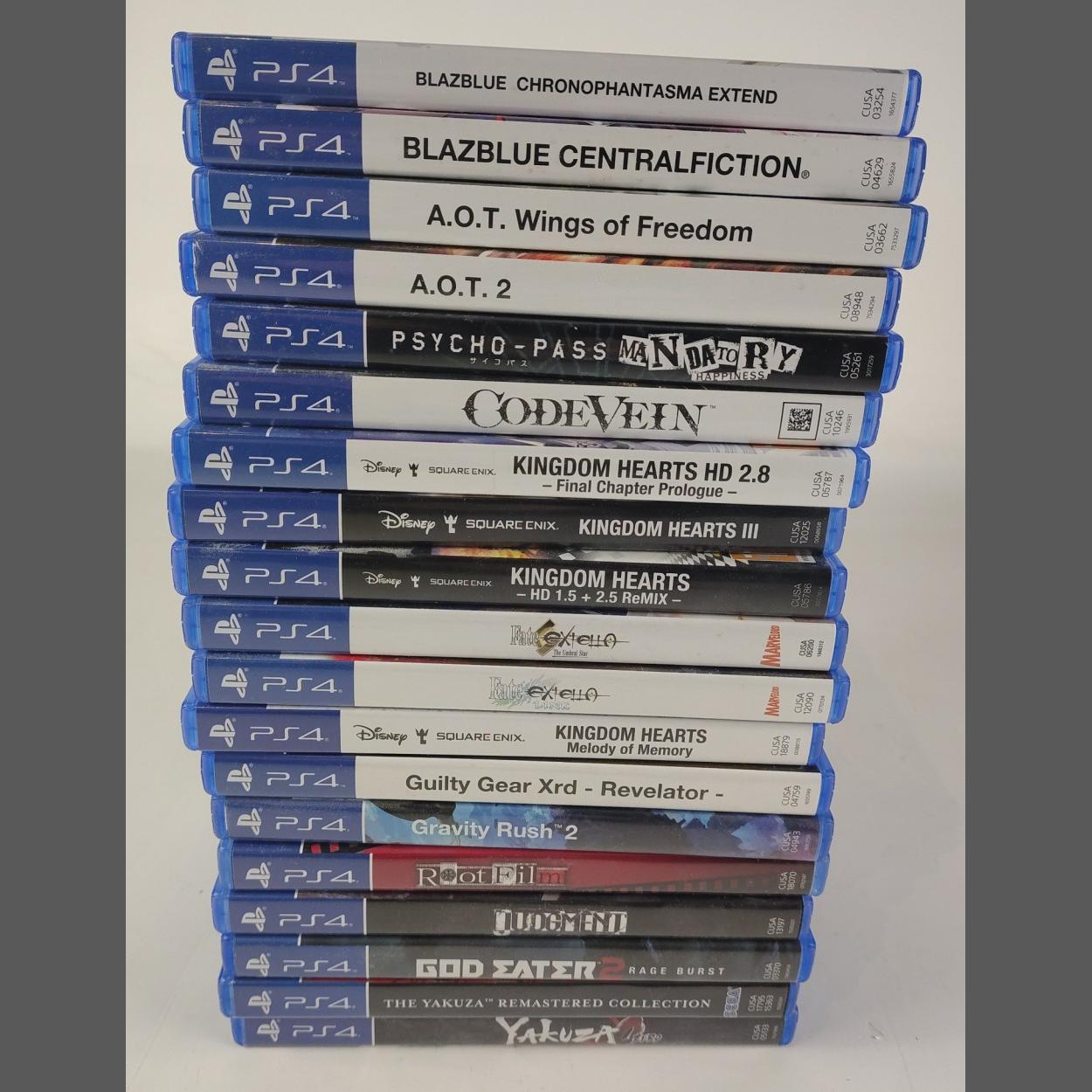 Nineteen SONY PS4 games to include PSYCHO-PASS, GUILTY GEAR Xrd Revelator, GOD EATER, YAKUZA, CODE VEIN, AOT Wings Of Freedom, BLAZBLUE CENTRAL FICTION, GRAVITY RUSH 2 and much more!