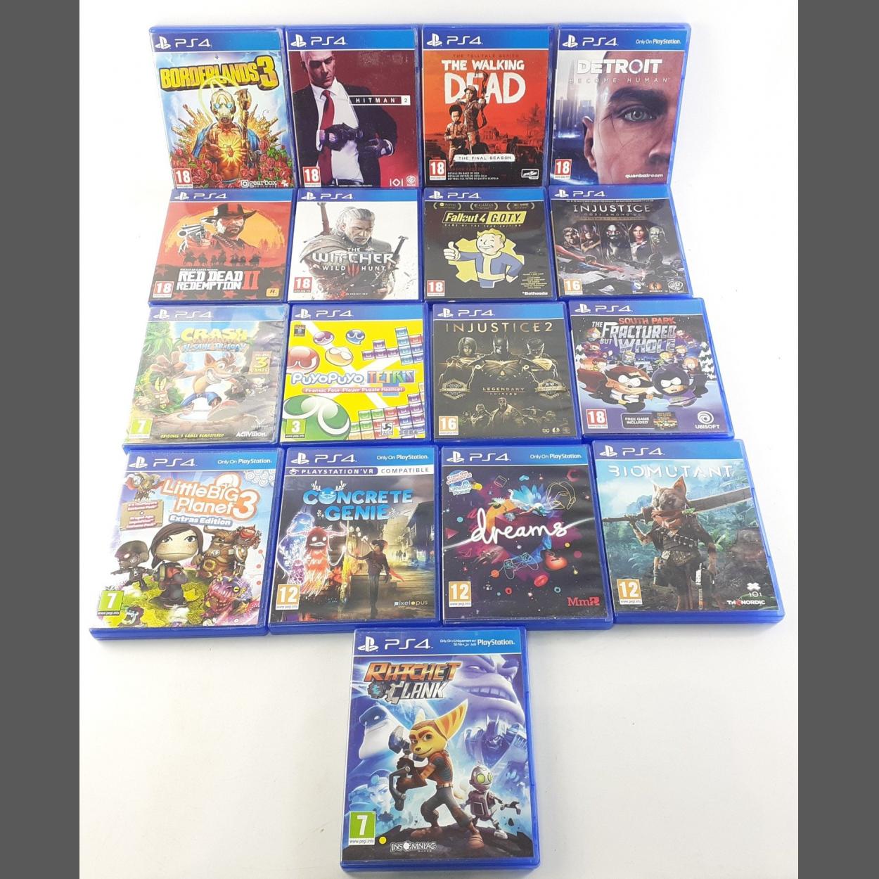 Seventeen SONY PS4 games to include HITMAN, INJUSTICE, THE WALKING DEAD, BIOMUTANT, RATCHET & CLANK, BORDERLANDS 3, THE WITCHER 3, WILD HUNT etc etc