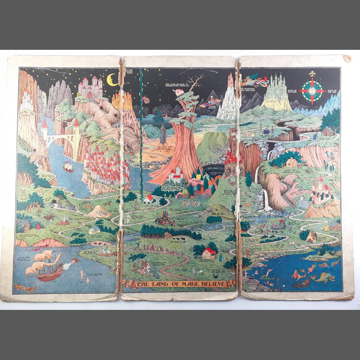 THE LAND OF MAKE BELIEVE vintage Fairy Tale board published by JARO HESS of Michigan Copyright 1930. There is wear but what a wonderful piece. Measures 97cm x 67cm.