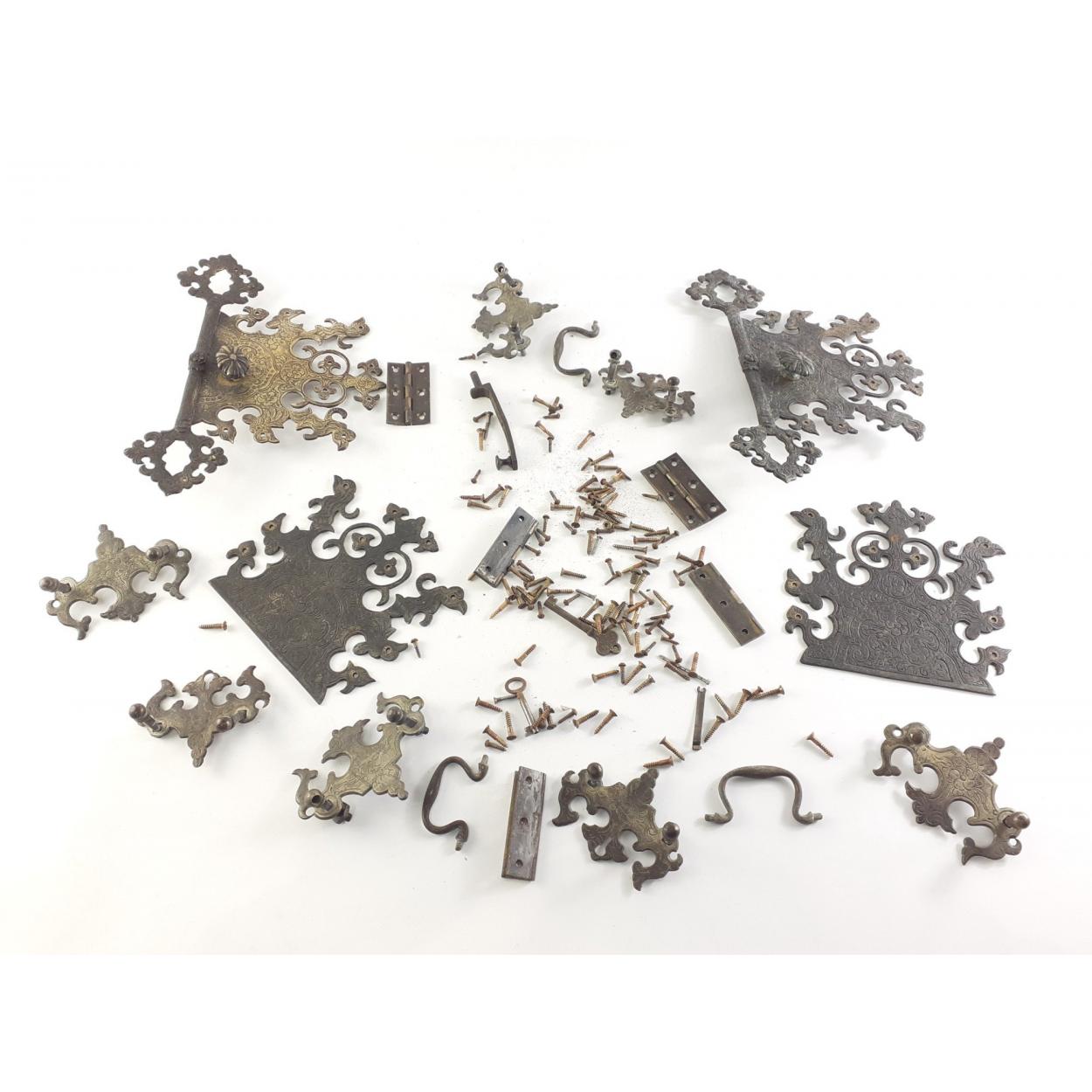 A great lot of vintage original furniture hardware hinges handles placks etc