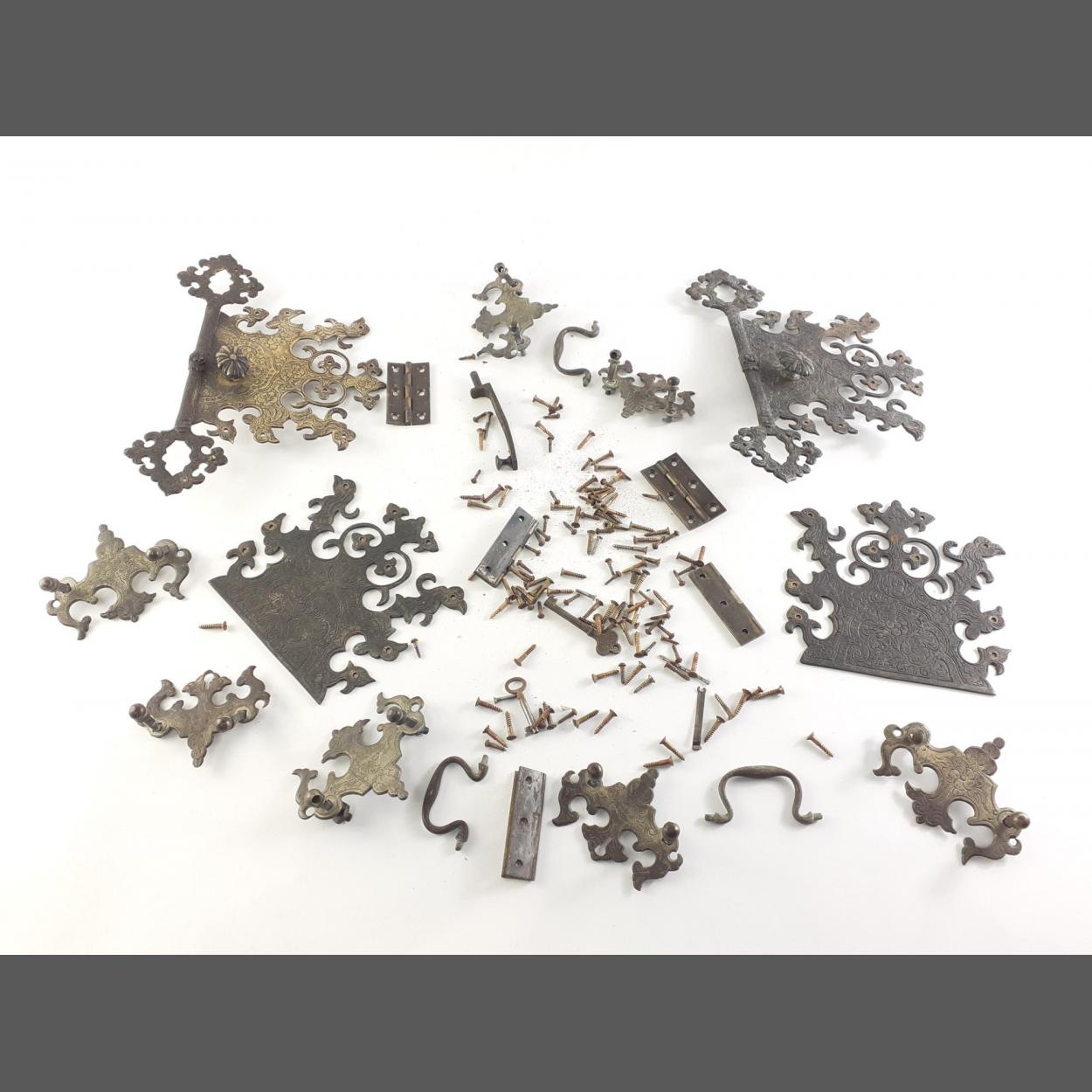 A great lot of vintage original furniture hardware hinges handles placks etc