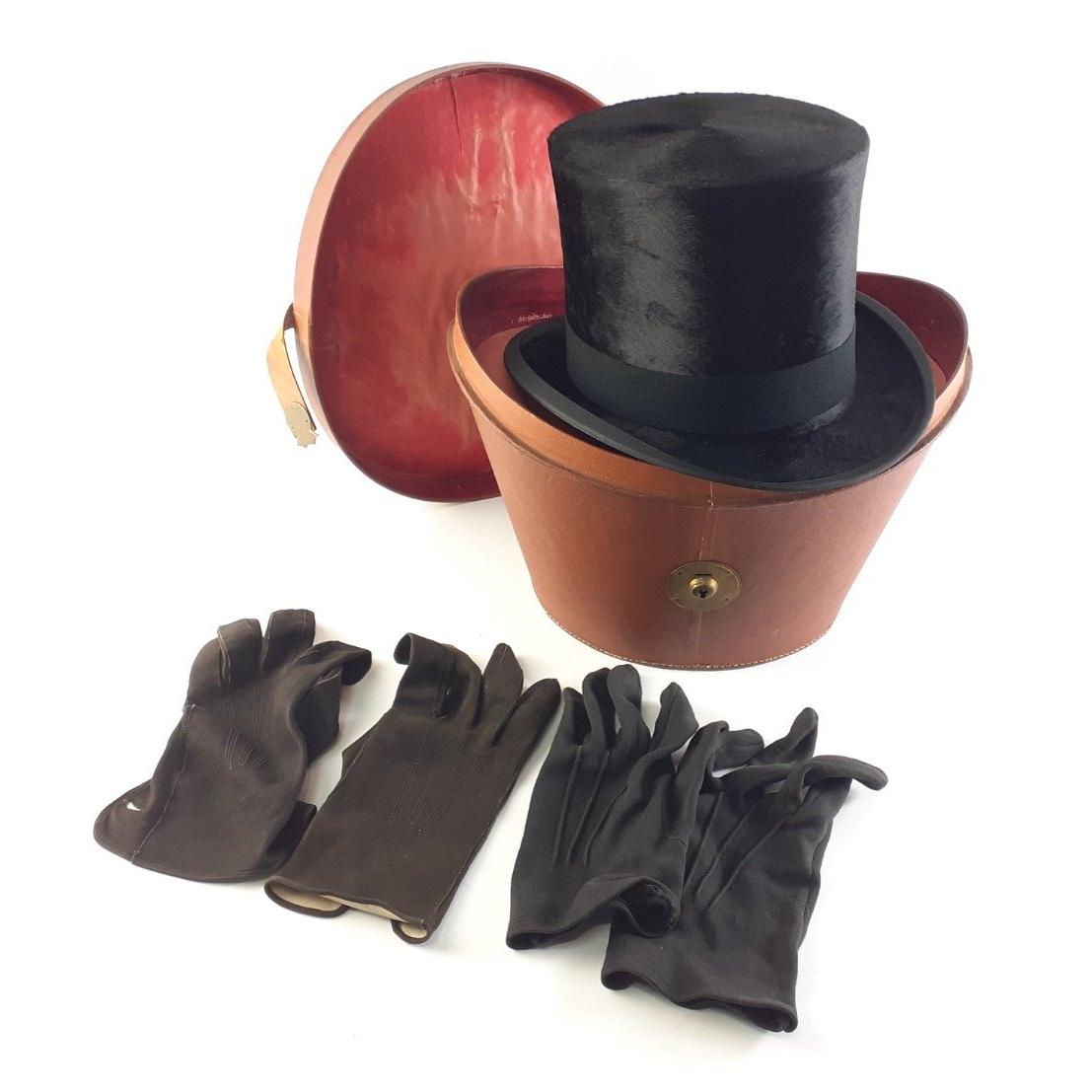 A THOMAS TOWNEND & CO. gentleman's top hat in original carry box. Minor wear 55cm internal diameter approx.