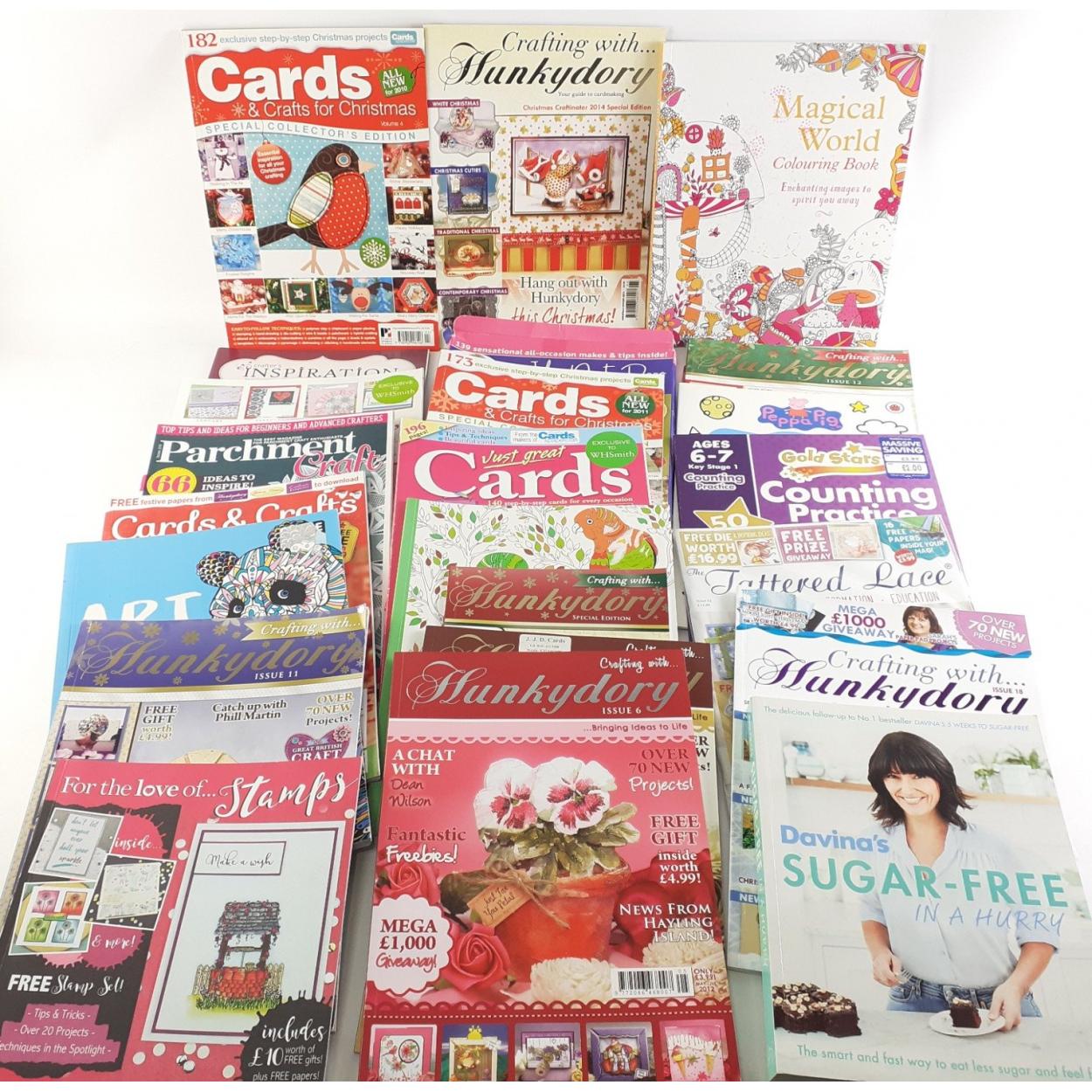 A collection of crafting books including by HUNKYDORY. Includes Cards & Crafts for Christmas, colouring book etc.