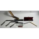 Is this not just the most tempting lot? - not one but TWO POLITICIANS' CUT THROAT RAZORS, one with a white handle the other black plus a boxed Arbenz's "Mandarin" razor, a boxed LOCKWOOD BROTHERS razor and a boxed whetstone to keep them all nice and sharp etc.