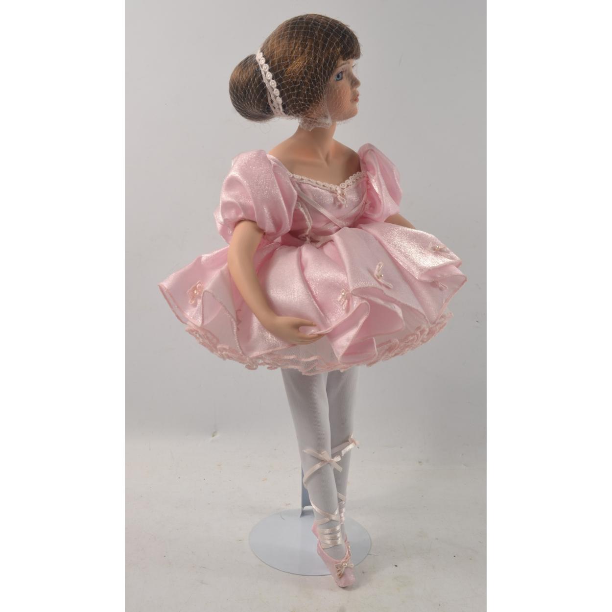 QUALITY! PORCELAIN BALLERINA doll, 45cm high dressed in pink tutu. Comes with stand for display.