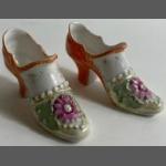 A pair of THURINGIAN (German) decorative shoes length approx 10cm, some gilt appears slightly worn.