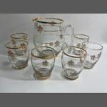 A DELIGHTFUL set of 6 drinking tumblers and large jug c1960's with gilded rims