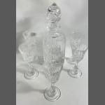 A small CRYSTAL DECANTER ( standing 24cm high) plus 6 SHERRY GLASSES