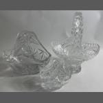 Two CRYSTAL FRUIT BASKETS with handles (27 and 20cm tall approx) plus 1 smaller BONBON BASKET with handle standing at approx 13cm high
