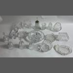 A small crystal and high quality cut glass collection to include an unusual lidded box with thistle design, glass bells, some with glass balls, a glass slipper etc etc.