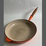 A LE CREUSET frying pan 28cm diameter in ORIGINAL volcanic orange,