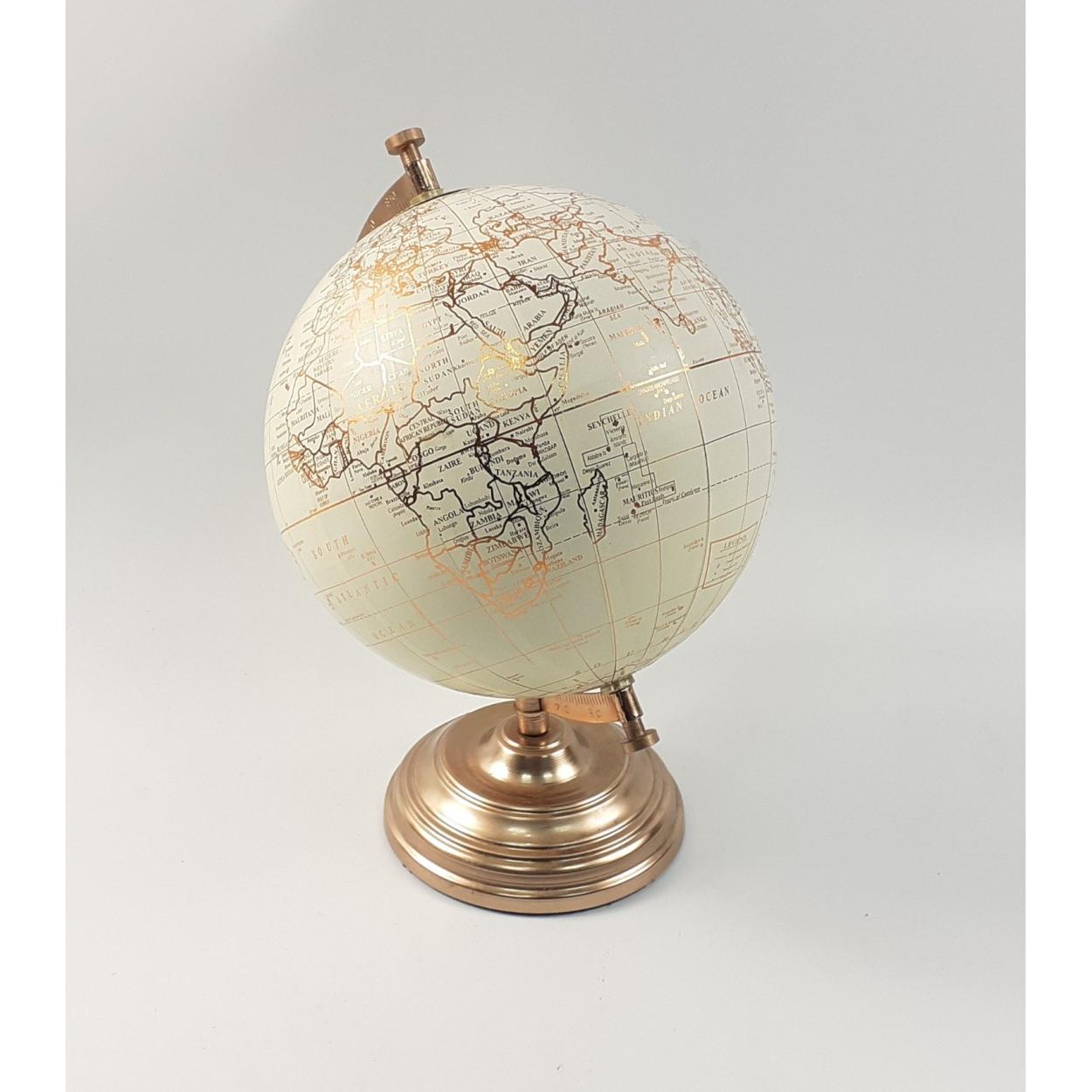 A GLOBE on stand with attractive copper lettering, approx 30cm tall