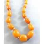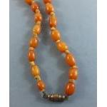 A string of graduated butterscotch amber-style beads 60cm long approx, weight 29g approx. Note one bead is broken as photographed.