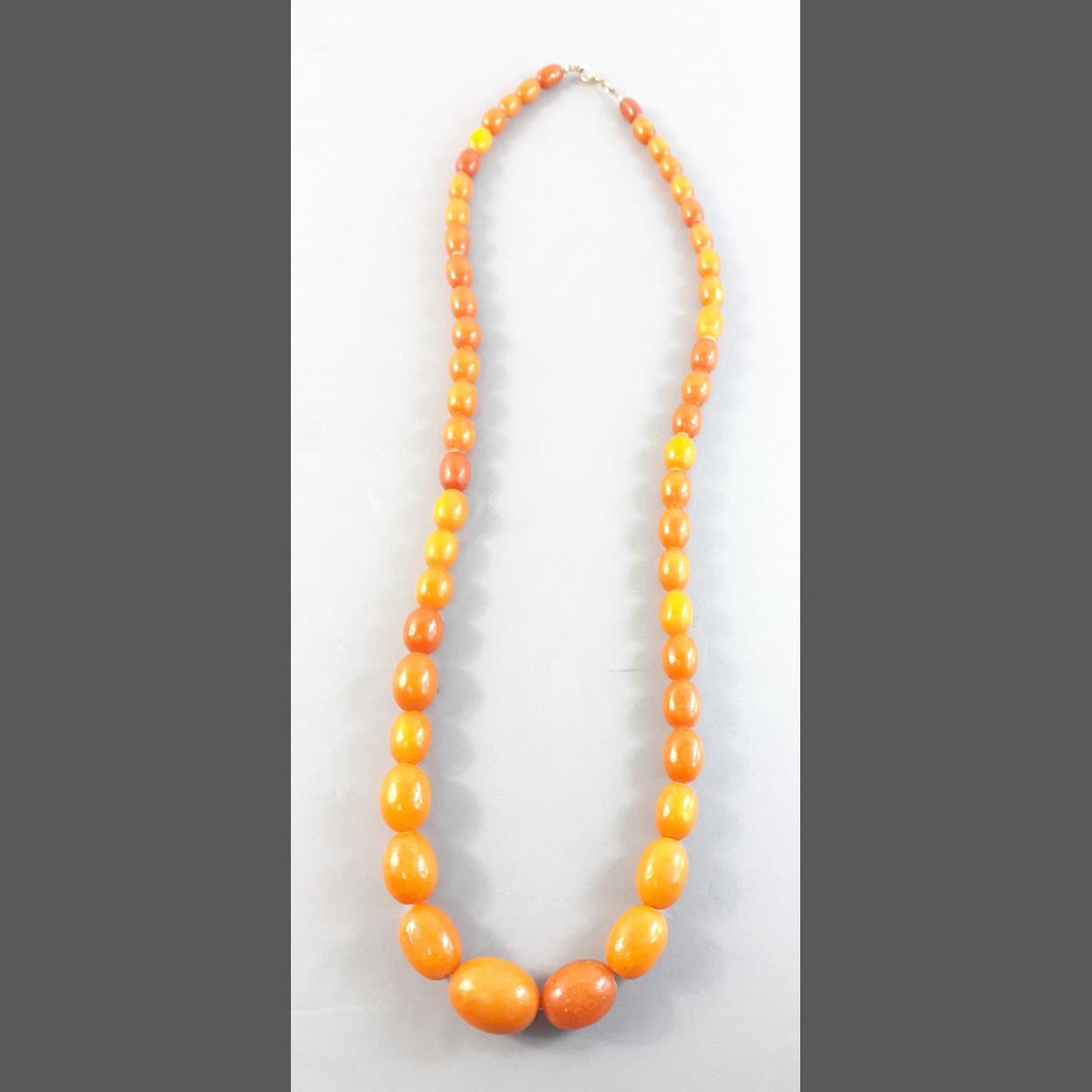A string of graduated butterscotch amber-style beads 80 cm long. Weight 75g approx