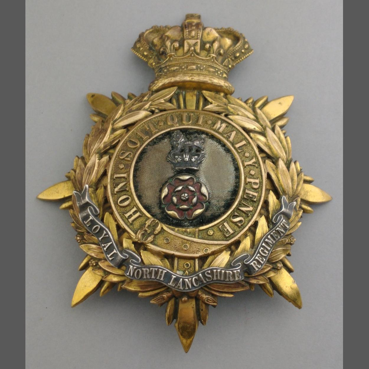 Victorian blue cloth helment badge. LOYAL NORTH LANCASHIRE REGIMENT. Stunning badge retaining original cloth centre.