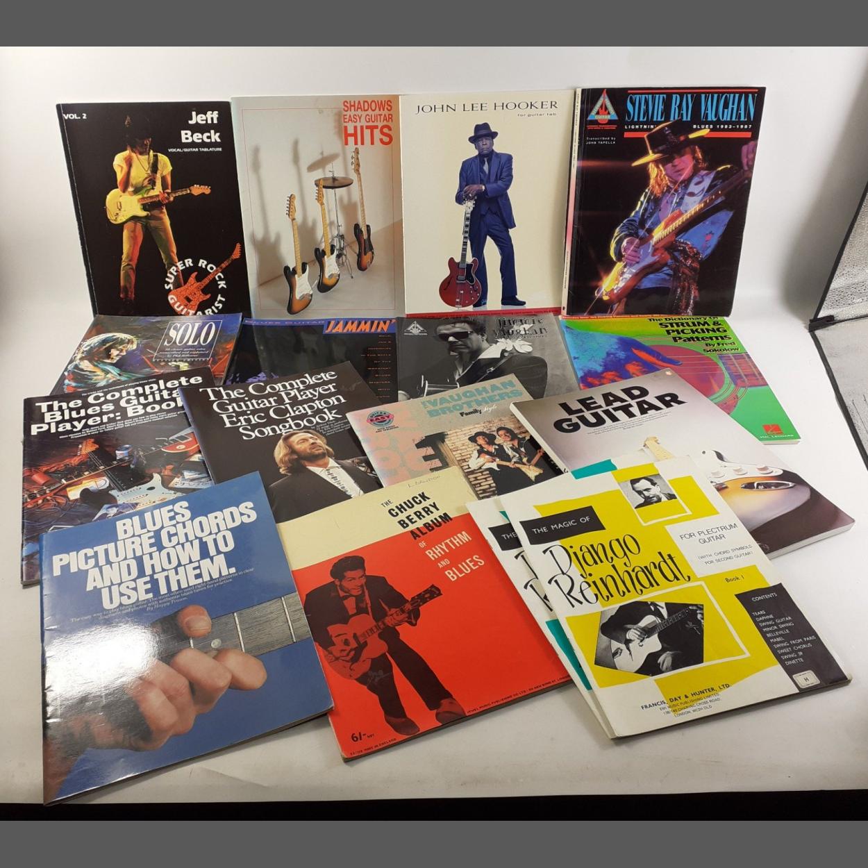 A collection of music books for the guitar to include JEFF BECK Super Rock Guitarist Vol. 2, 50 Classic Guitar Solos Transcribed and Explained by Phil Hilborne etc. Nice collection