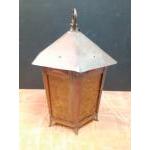 A lovely VINTAGE copper and amber glass electric porch ceiling lamp - quite UNUSUAL - dimensions 32cm height x 25cm diameter approx