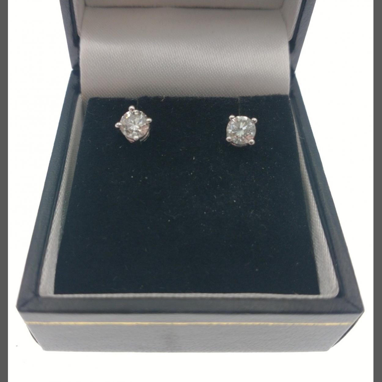 18ct (750 stamped) Yellow and white gold earrings each set with a single round brilliant cut diamond approx. 0.8ct in total. Jeweller assessed as H colour S13 clarity. 2015 Insurance valuation of £2110.